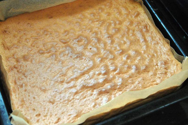 少し膨らみが足りないけれど、ちょうどよい甘さの(既製品の土台はどうも甘すぎる)生地に、久しぶりながら自己満足。あら熱が少し取れたところに、ラム酒を少々塗っておく。