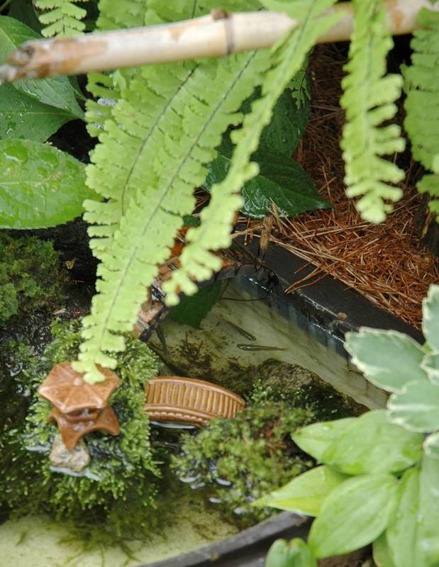 石付けにしたイワシャジンを置いている鉢の水溜りにボウフラが湧くので、彼らがいい塩梅に肥えたところでこの中に入れている。