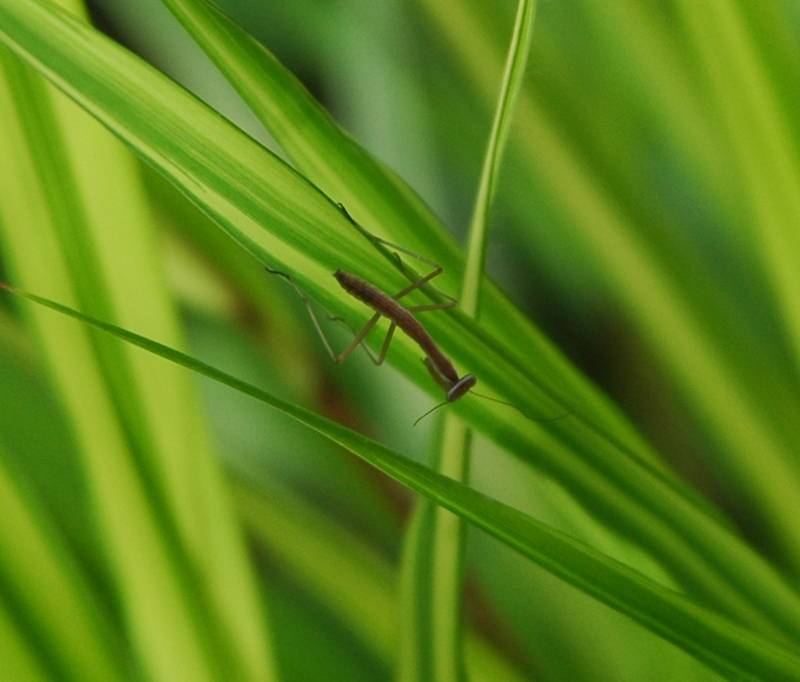 剪定の手伝いをしたときだったか門松を作ったときだったか忘れてしまったが、松の木の枝についていたカマキリの卵を職人さんがほいっと私に投げてくれたのを、冬中大事に軒下に収納しておいた。どうやら無事、むけたらしい。