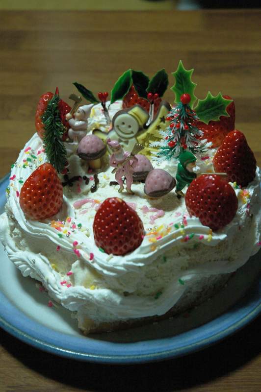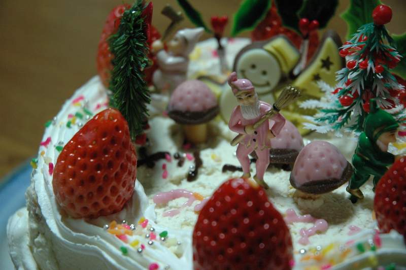 しかしクリスマスケーキはやはり、丸いデコレーションでなければ…(こだわり)。