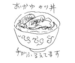 「うん、ご飯はいつもとちがうけど、カツどんもちょっとしょっぱいけど、ちょっと卵も焦げちゃったけど、おいしいね。」