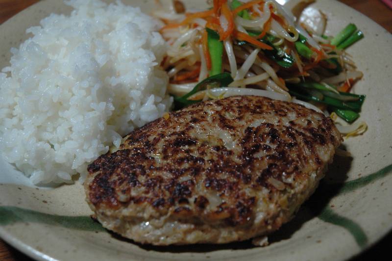 「ふぅーーん…」マズイ。ハンバーグは給食で食べるものと思われてはシャクである。冷凍ひき肉がちょうどいい量、残っていたので、久々に作ってみた。