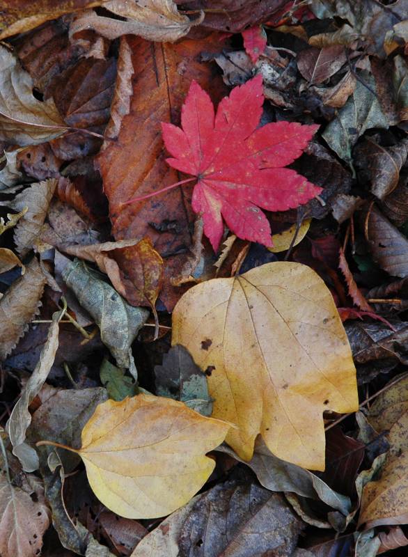 紅葉の色はまだ残っていたが、すでに晩秋の景色の斜面。…さすがに目に付く緑は羊歯が殆どかな…。