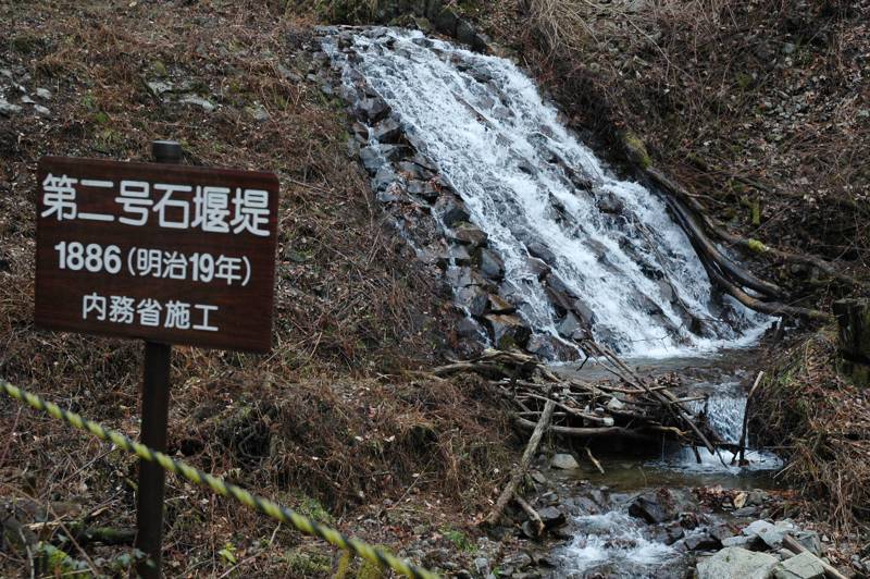 『第二号』とされているこの「根止(ねどめ)石積堰堤」は幅約8m、高さ約7m。そう大きなものではない。
