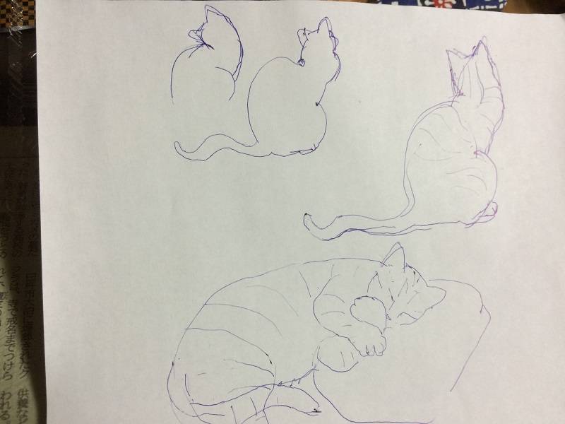 では、ボールペンで愛猫をスケッチ。