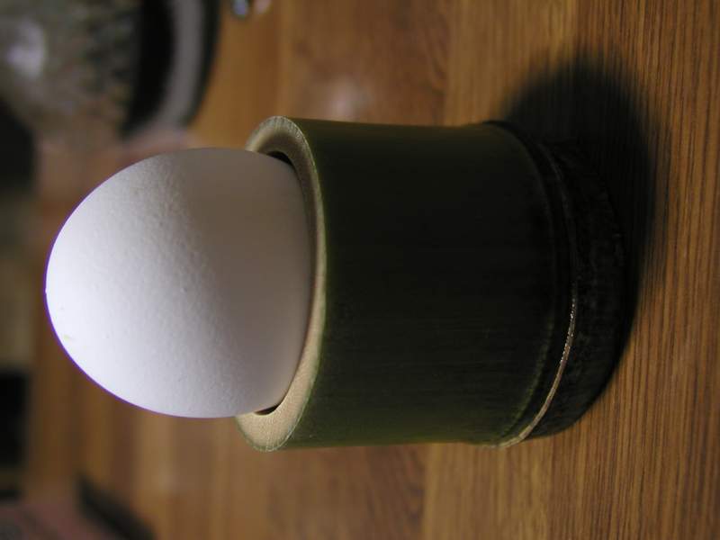 朝ご飯の半熟卵をこの竹のお猪口に乗せてみた。